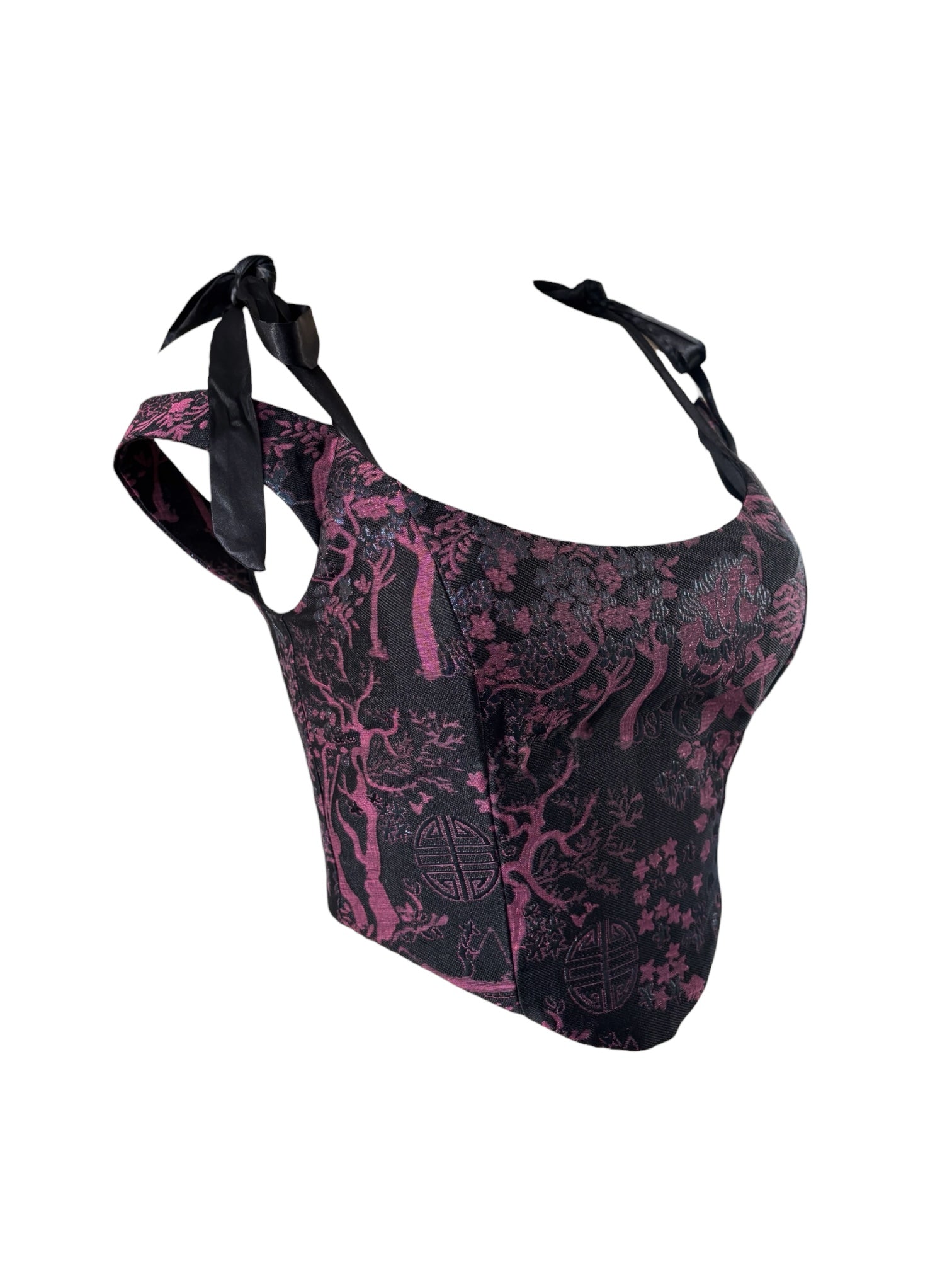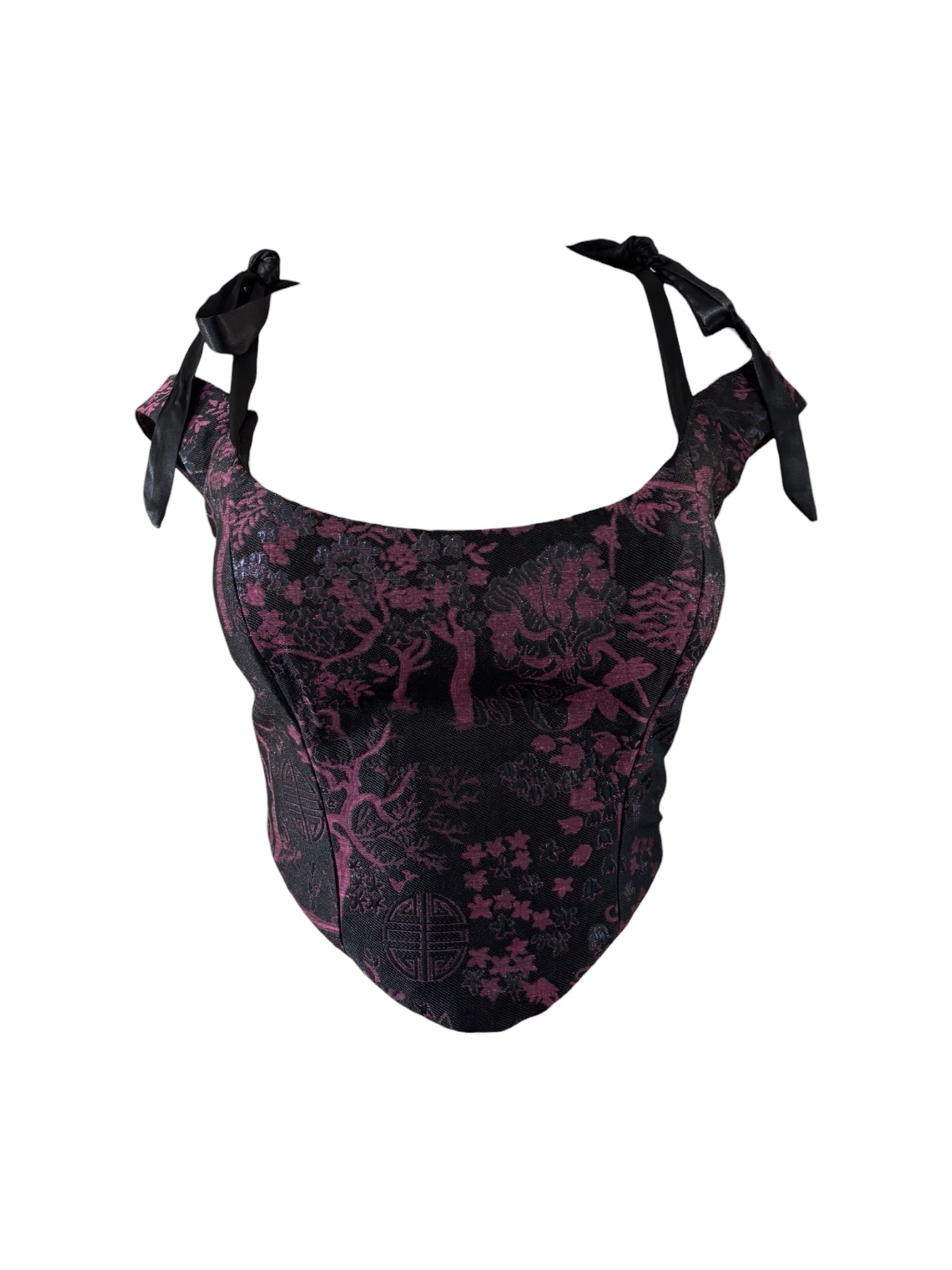 Lively Black Ribbon Corset Style. No Zipper. It’s giving very much whimsical.