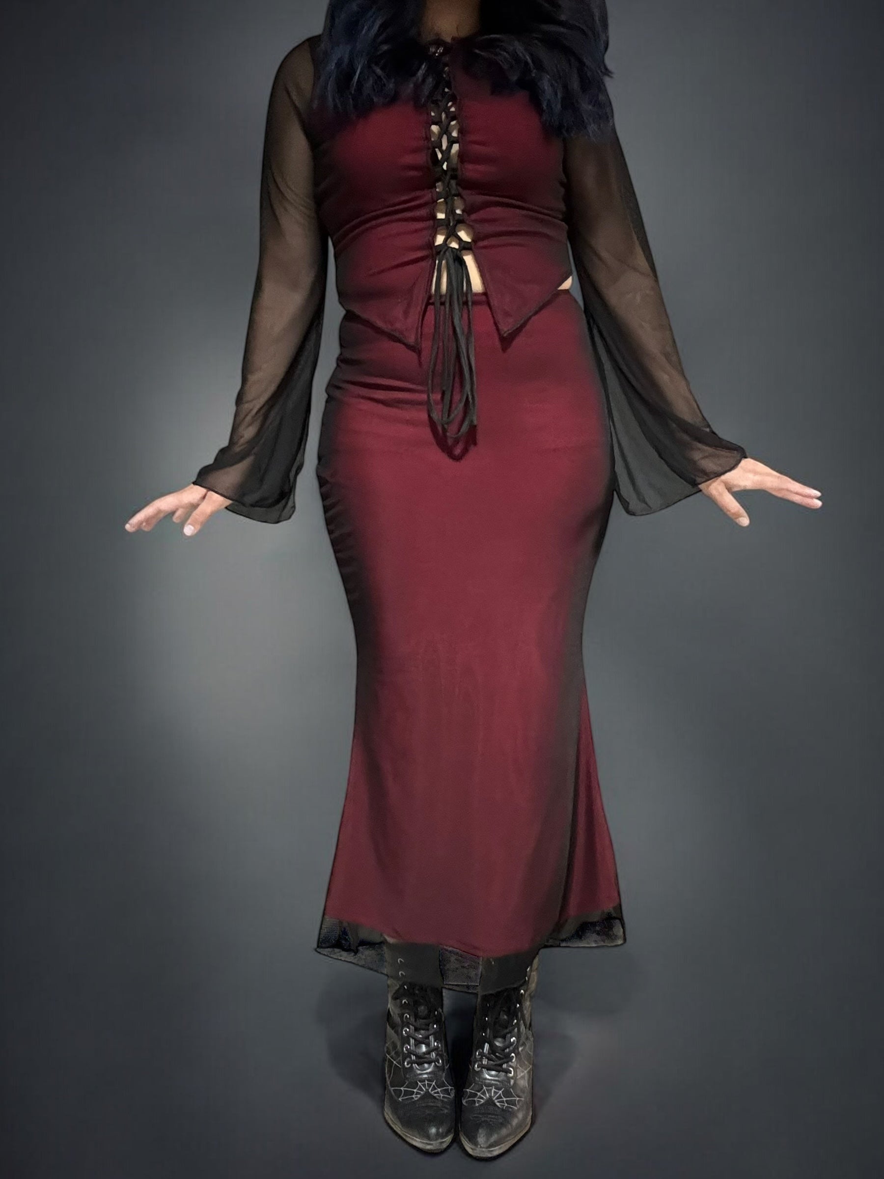 The Elisabeta Skirt. MIDI length. Elastic Waistband. Very Stretchy Material. I’m a size medium and can wear a size small. This is our first batch of sets. Limited quantity!